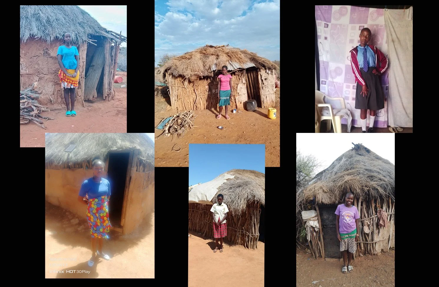 These are six new students from the Twala Women’s Center Group near Dol Dol, Kenya. Each girl is pictured near her home.